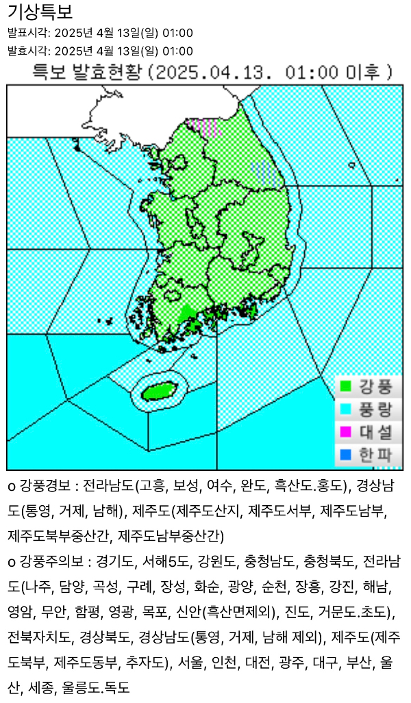 4월 13일 일요일 기상악화로 휴무입니다